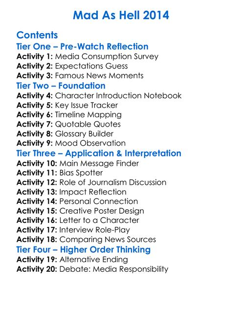 Mad As Hell 2014 Worksheet Activity Booklet