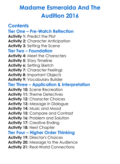 Madame Esmeralda And The Audition 2016 Worksheet Activity Booklet
