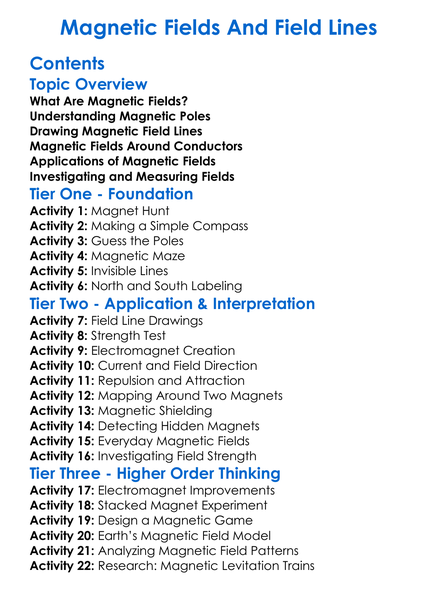 Magnetic Fields And Field Lines Worksheet Activity Booklet