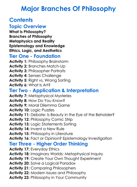 Major Branches Of Philosophy Worksheet Activity Booklet