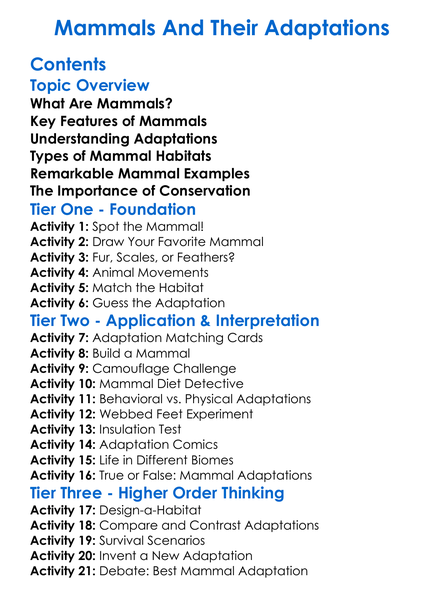 Mammals And Their Adaptations Worksheet Activity Booklet