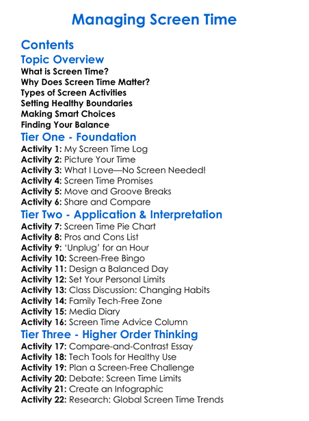 Managing Screen Time Worksheet Activity Booklet