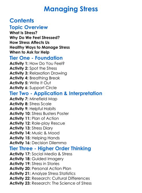 Managing Stress Worksheet Activity Booklet