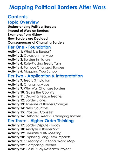 Mapping Political Borders After Wars Worksheet Activity Booklet