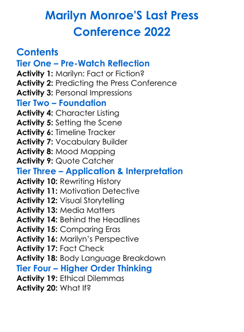 Marilyn Monroes Last Press Conference 2022 Worksheet Activity Booklet