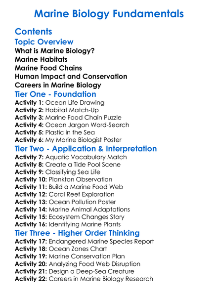 Marine Biology Fundamentals Worksheet Activity Booklet