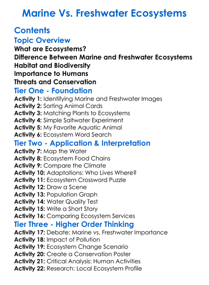 Marine Vs Freshwater Ecosystems Worksheet Activity Booklet