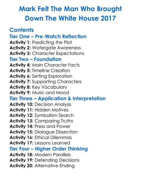 Mark Felt The Man Who Brought Down The White House 2017 Worksheet Activity Booklet