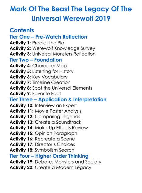 Mark Of The Beast The Legacy Of The Universal Werewolf 2019 Worksheet Activity Booklet