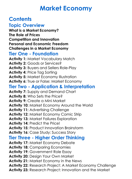 Market Economy Worksheet Activity Booklet