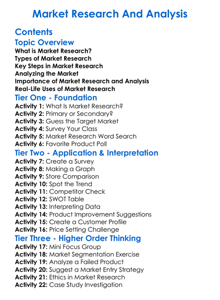 Market Research And Analysis Worksheet Activity Booklet