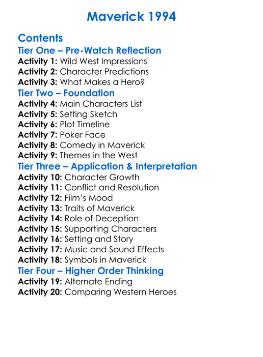 Maverick 1994 Worksheet Activity Booklet