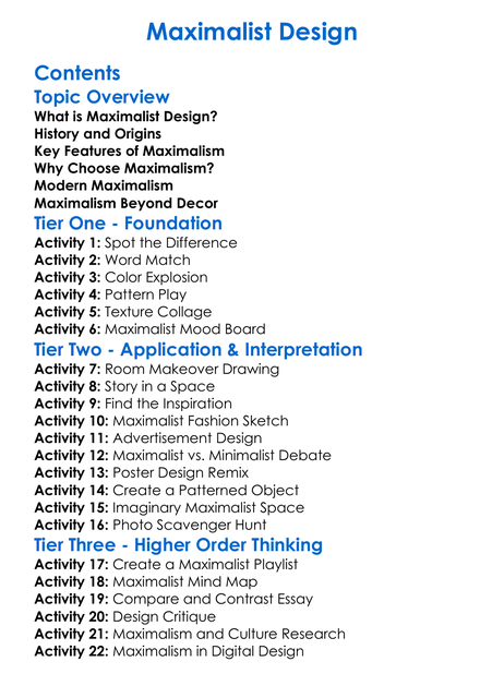 Maximalist Design Worksheet Activity Booklet