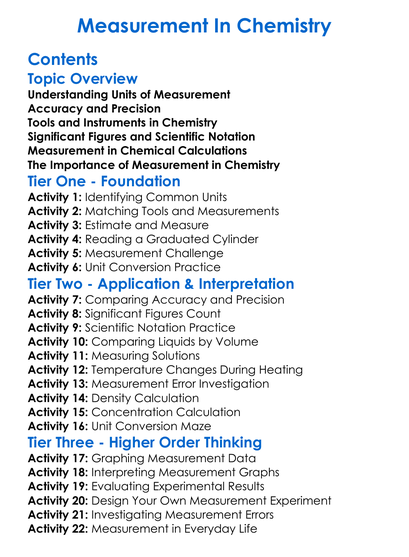 Measurement In Chemistry Worksheet Activity Booklet