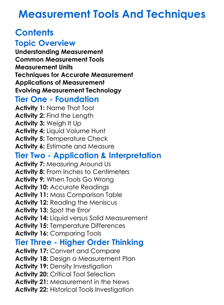 Measurement Tools And Techniques Worksheet Activity Booklet