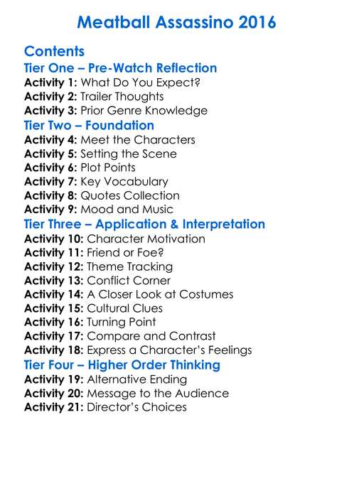 Meatball Assassino 2016 Worksheet Activity Booklet