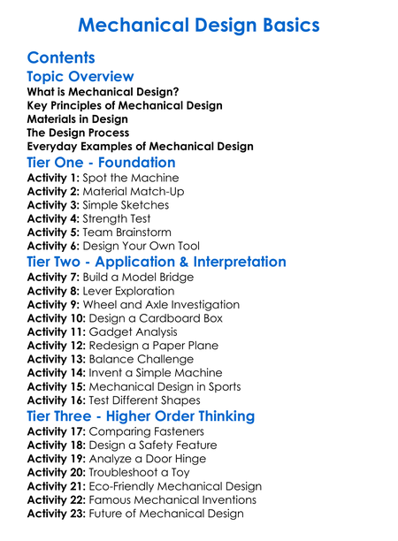 Mechanical Design Basics Worksheet Activity Booklet