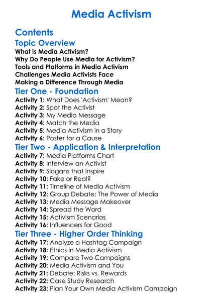 Media Activism Worksheet Activity Booklet