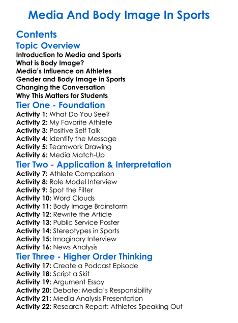Media And Body Image In Sports Worksheet Activity Booklet