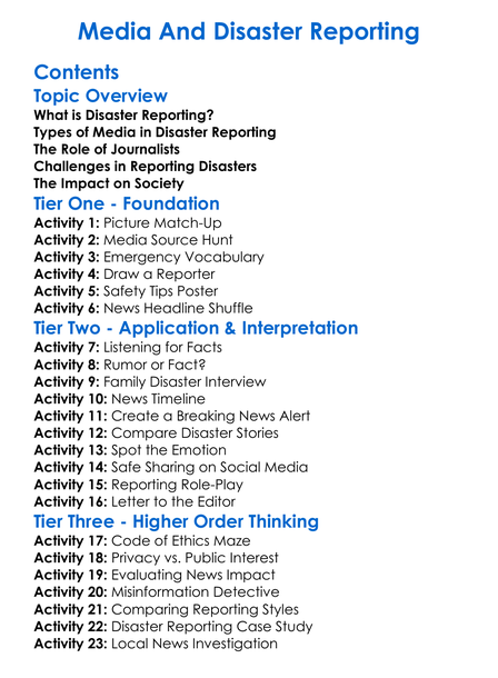 Media And Disaster Reporting Worksheet Activity Booklet