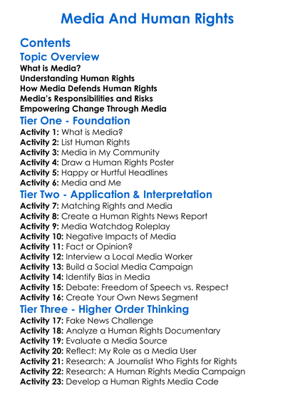 Media And Human Rights Worksheet Activity Booklet