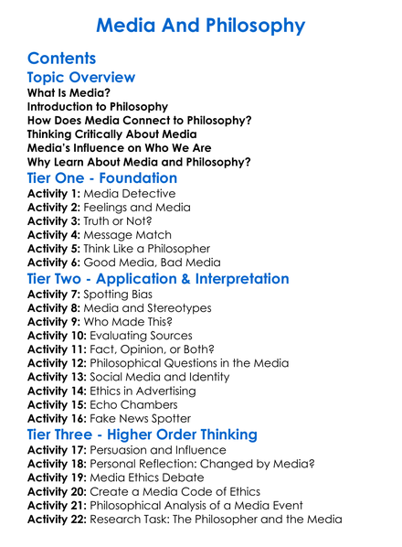 Media And Philosophy Worksheet Activity Booklet
