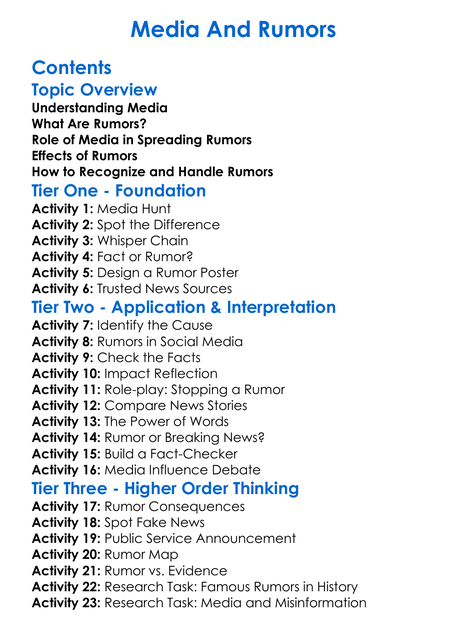 Media And Rumors Worksheet Activity Booklet