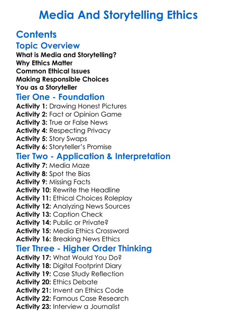 Media And Storytelling Ethics Worksheet Activity Booklet