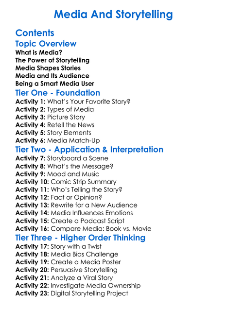 Media And Storytelling Worksheet Activity Booklet