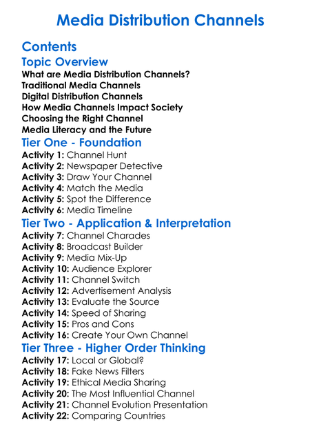 Media Distribution Channels Worksheet Activity Booklet