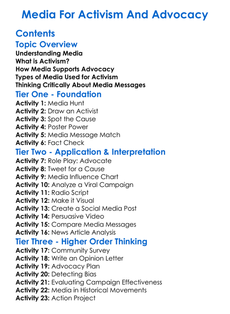 Media For Activism And Advocacy Worksheet Activity Booklet
