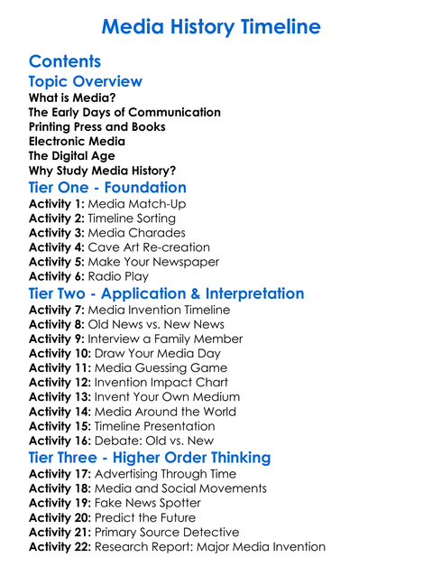 Media History Timeline Worksheet Activity Booklet