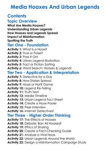 Media Hoaxes And Urban Legends Worksheet Activity Booklet