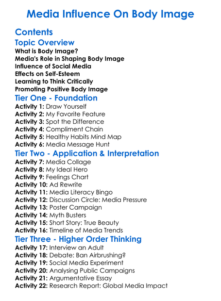 Media Influence On Body Image Worksheet Activity Booklet