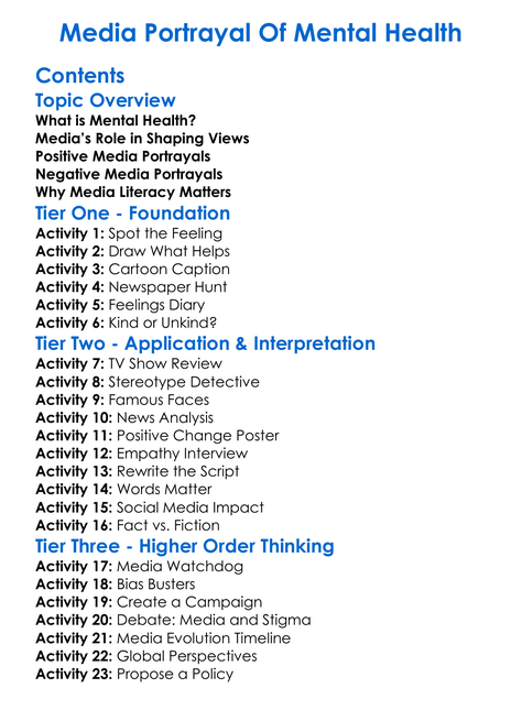 Media Portrayal Of Mental Health Worksheet Activity Booklet