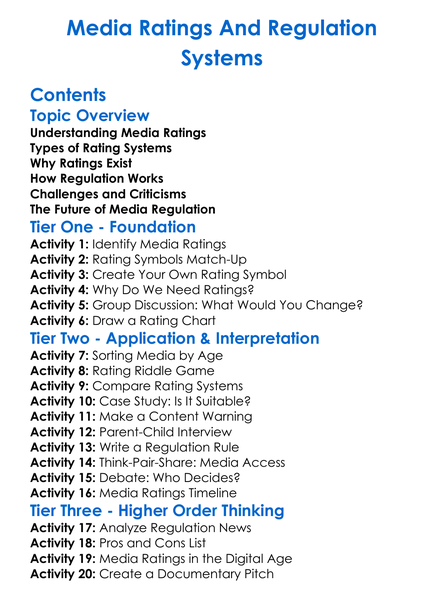 Media Ratings And Regulation Systems Worksheet Activity Booklet