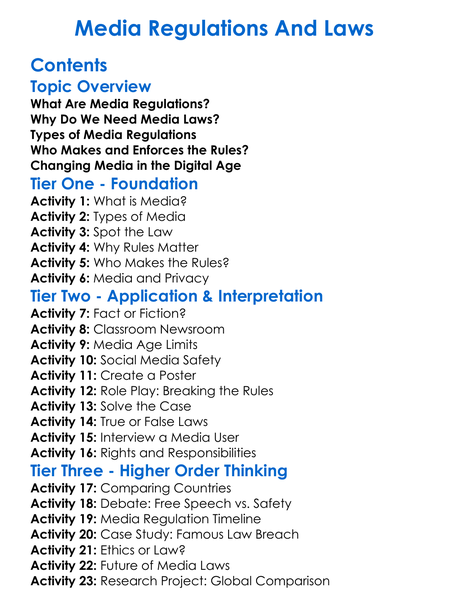 Media Regulations And Laws Worksheet Activity Booklet