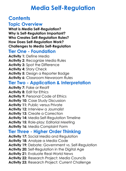 Media Self-Regulation Worksheet Activity Booklet