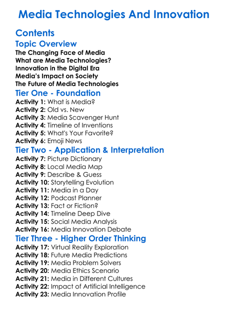 Media Technologies And Innovation Worksheet Activity Booklet
