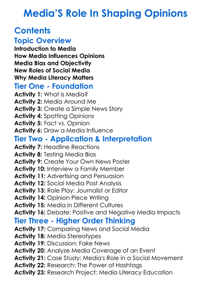 Medias Role In Shaping Opinions Worksheet Activity Booklet