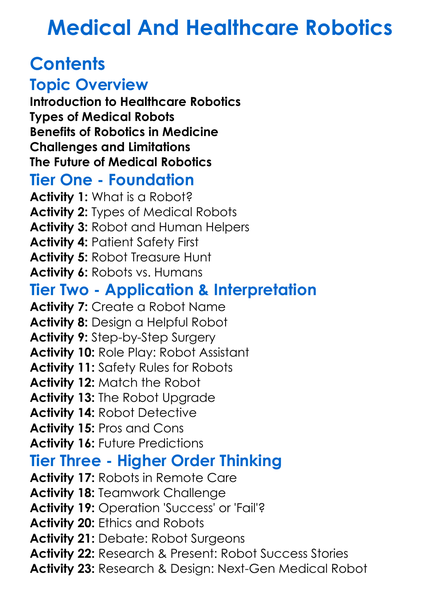 Medical And Healthcare Robotics Worksheet Activity Booklet