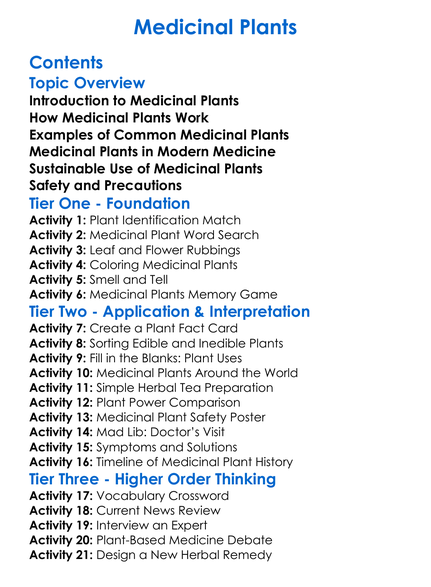 Medicinal Plants Worksheet Activity Booklet