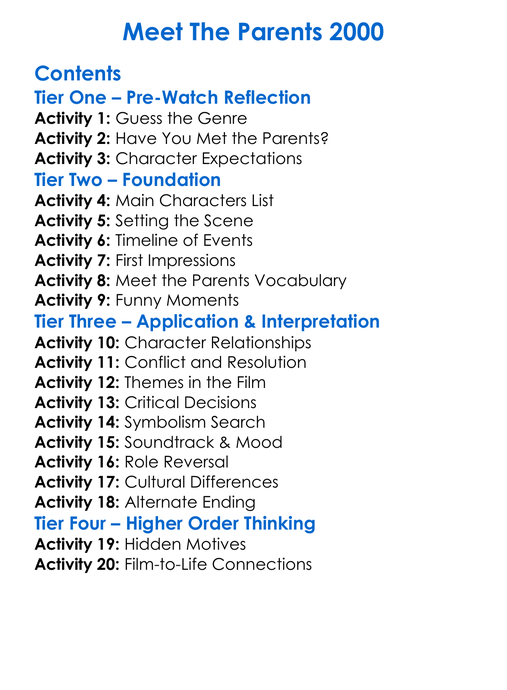 Meet The Parents 2000 Worksheet Activity Booklet