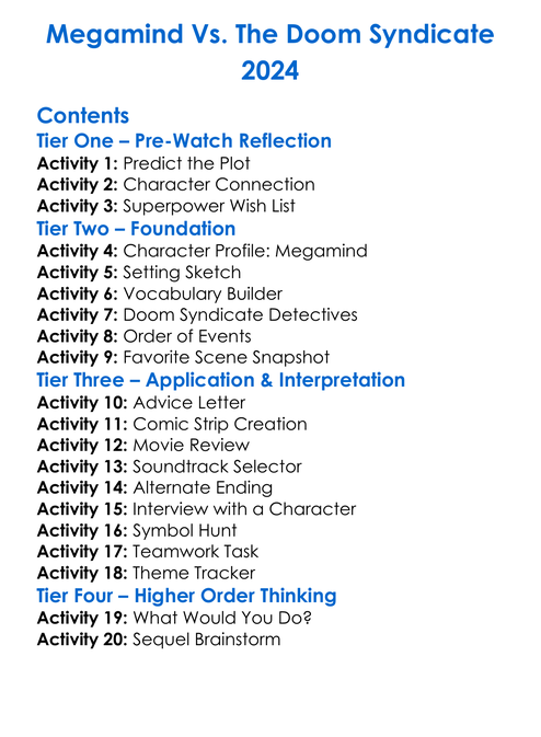 Megamind Vs The Doom Syndicate 2024 Worksheet Activity Booklet