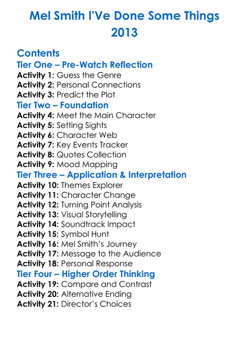 Mel Smith Ive Done Some Things 2013 Worksheet Activity Booklet