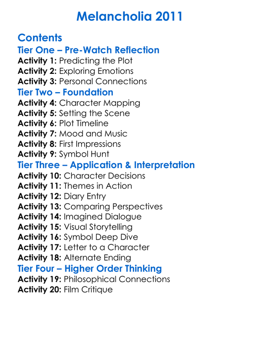 Melancholia 2011 Worksheet Activity Booklet