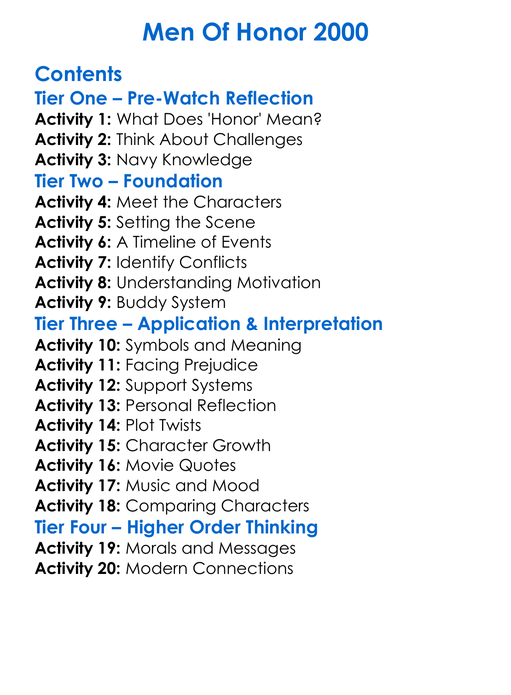 Men Of Honor 2000 Worksheet Activity Booklet