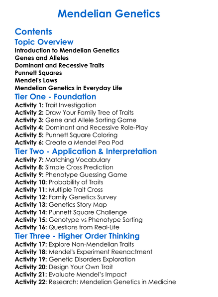 Mendelian Genetics Worksheet Activity Booklet