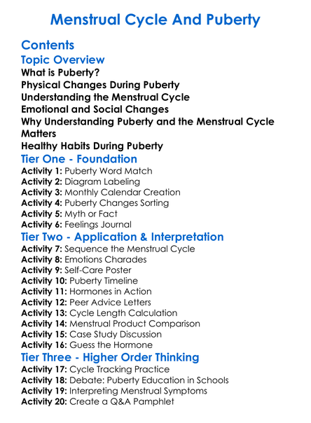Menstrual Cycle And Puberty Worksheet Activity Booklet
