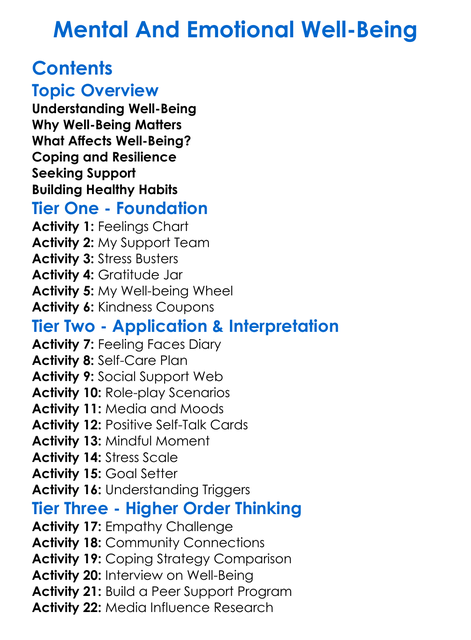 Mental And Emotional Well-Being Worksheet Activity Booklet